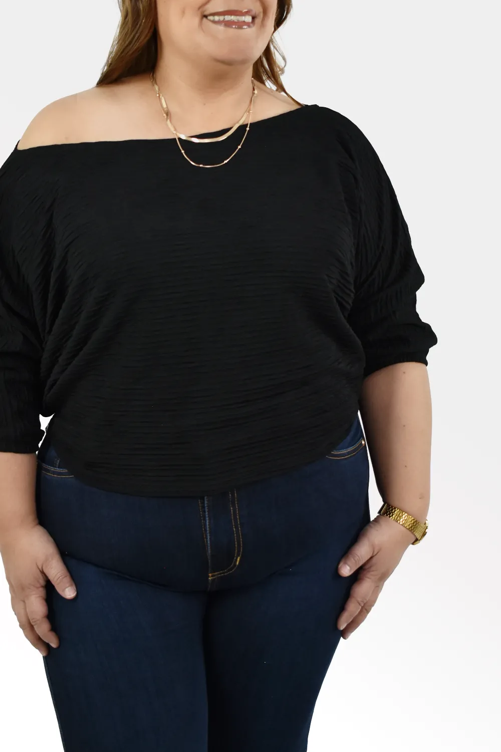Blusa de escote amplio 🖤 cómoda y favorecedora.