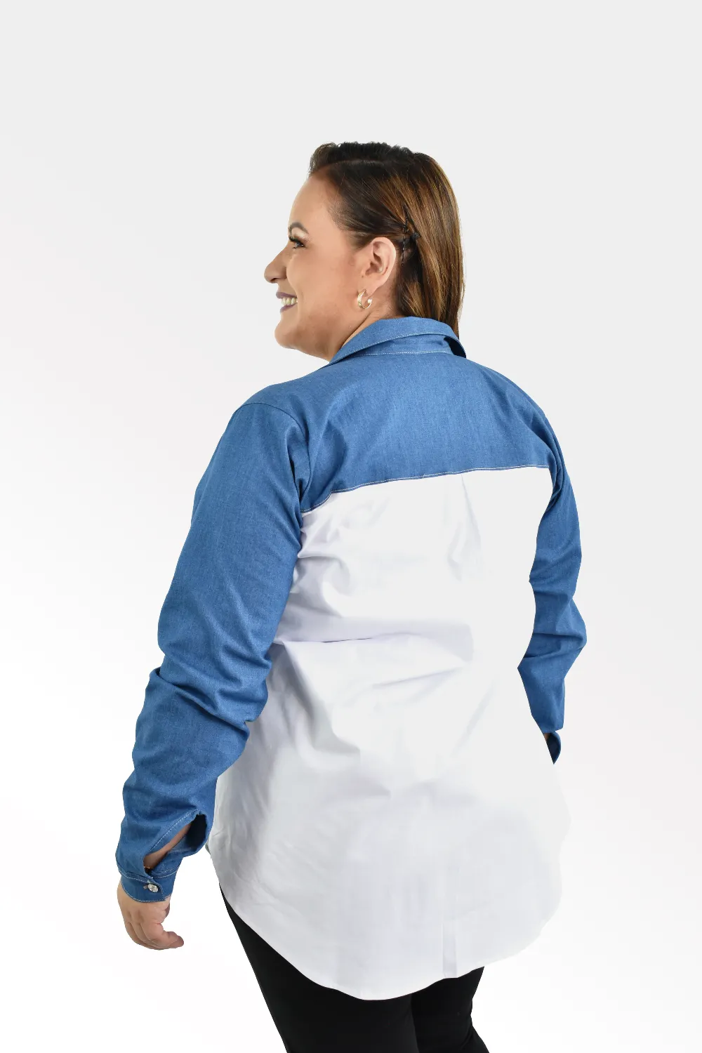 Una camisa fresca y versátil que mezcla lo mejor del blanco y el denim para un look moderno y con estilo.