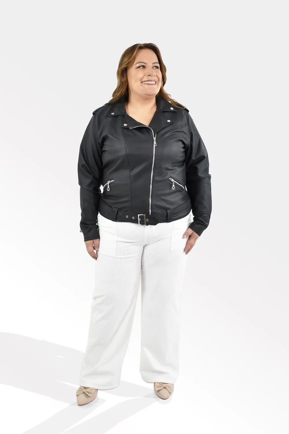 La Bivi modelo mide 1,60CM y usó una TALLA 16