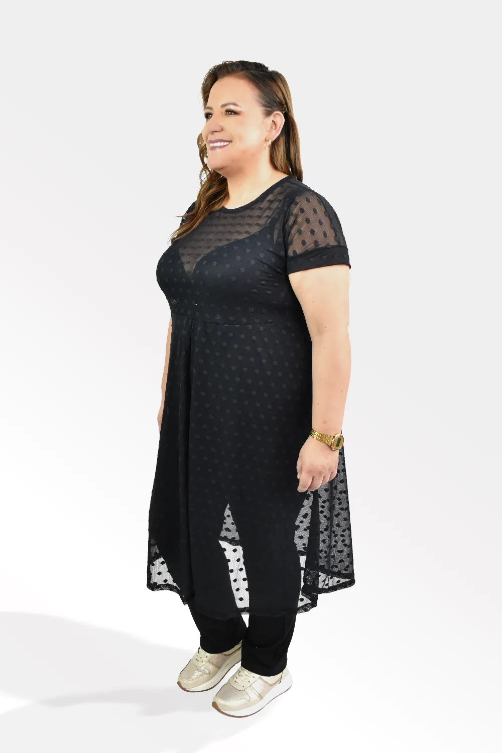 La Bivi modelo mide 1,60CM y usó una TALLA XL